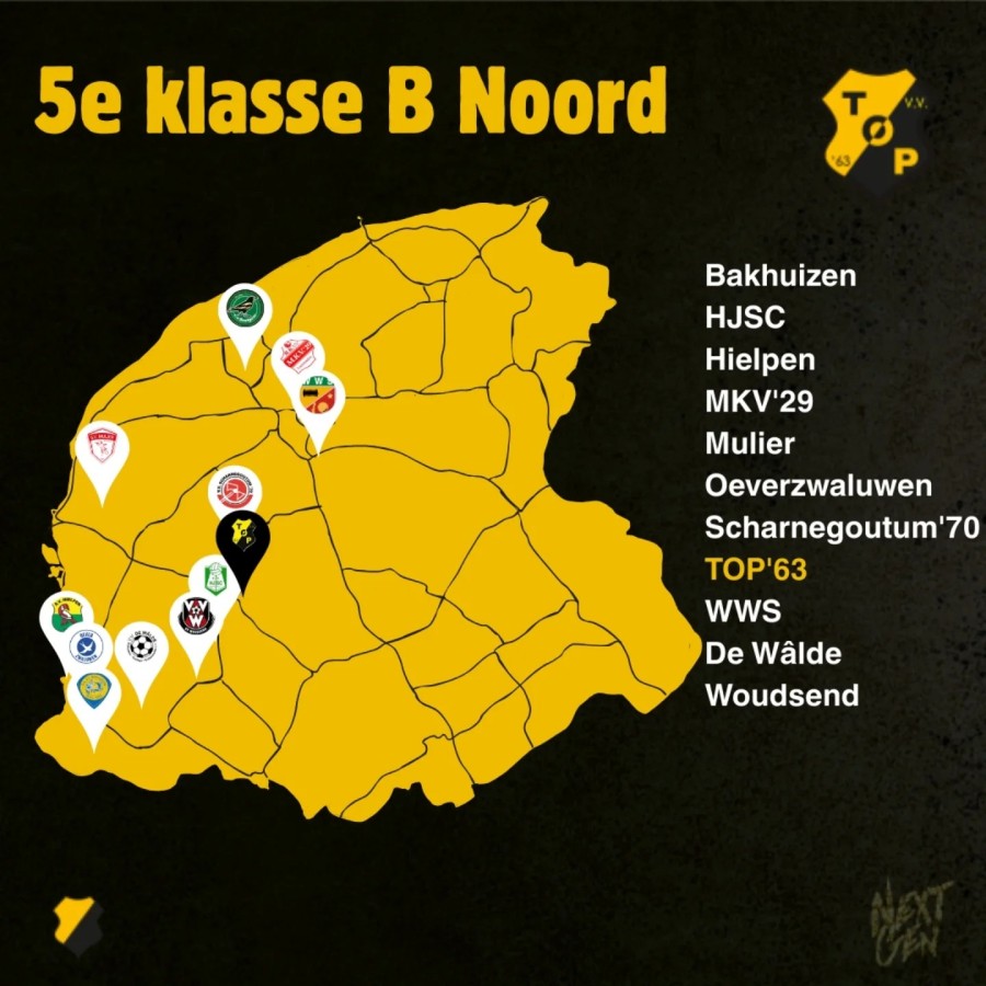 In het seizoen 2025-2026 speelt vv TOP'63 1 in de 5e klasse B Noord.
